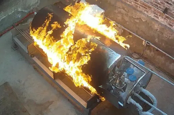 火烧试验是车载液氢瓶的一项重要试验内容,主要考核车载液氢瓶在火烧情况下压力泄放装置的工作能力和车载液氢瓶的耐火烧性能,车载液氢瓶内储存大量液氢真实介质,危险因素高,火烧试验难度大。