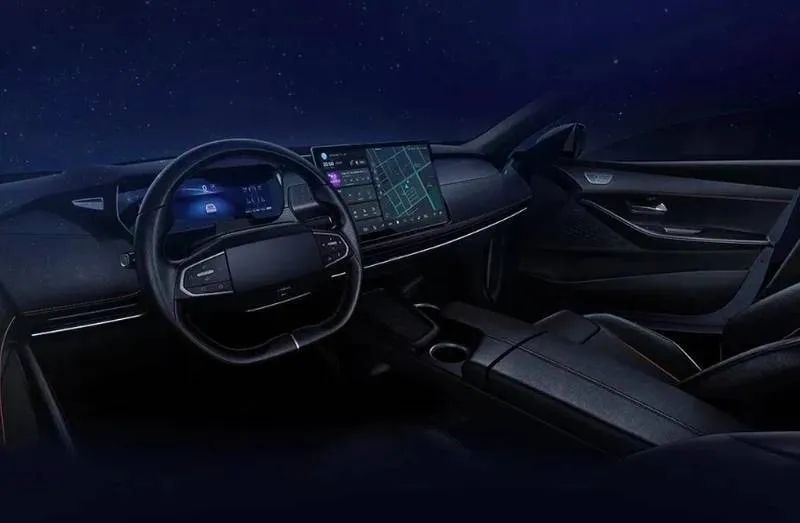 长安深蓝C385 的内饰采用了与现在长安所有车型都不同的设计风格,仪表与中控屏采用的是独立式布局,方向盘采用的是双幅式设计,并且是一个运动化的平底设计。中控屏采用的是大横屏的设计,而且中控屏幕可以左右倾斜转动,科技感十足。虽然没有直接信息表明车机会用鸿蒙系统,但从界面的布局来看,与之前发布的阿维塔 011 中控屏布局基本一致。